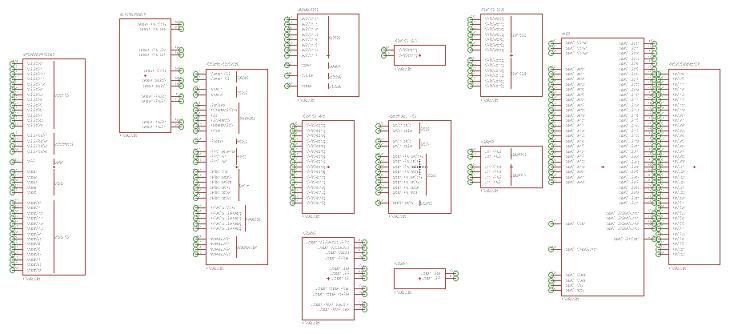 The CAD-Symbol always consists of several sub-symbols. The number of sub-symbols and their definition depends on the device and the individual configuration. The following Figure shows a possible configuration for a LPC1850 Device for the EAGLE Schematic Entry Tool.